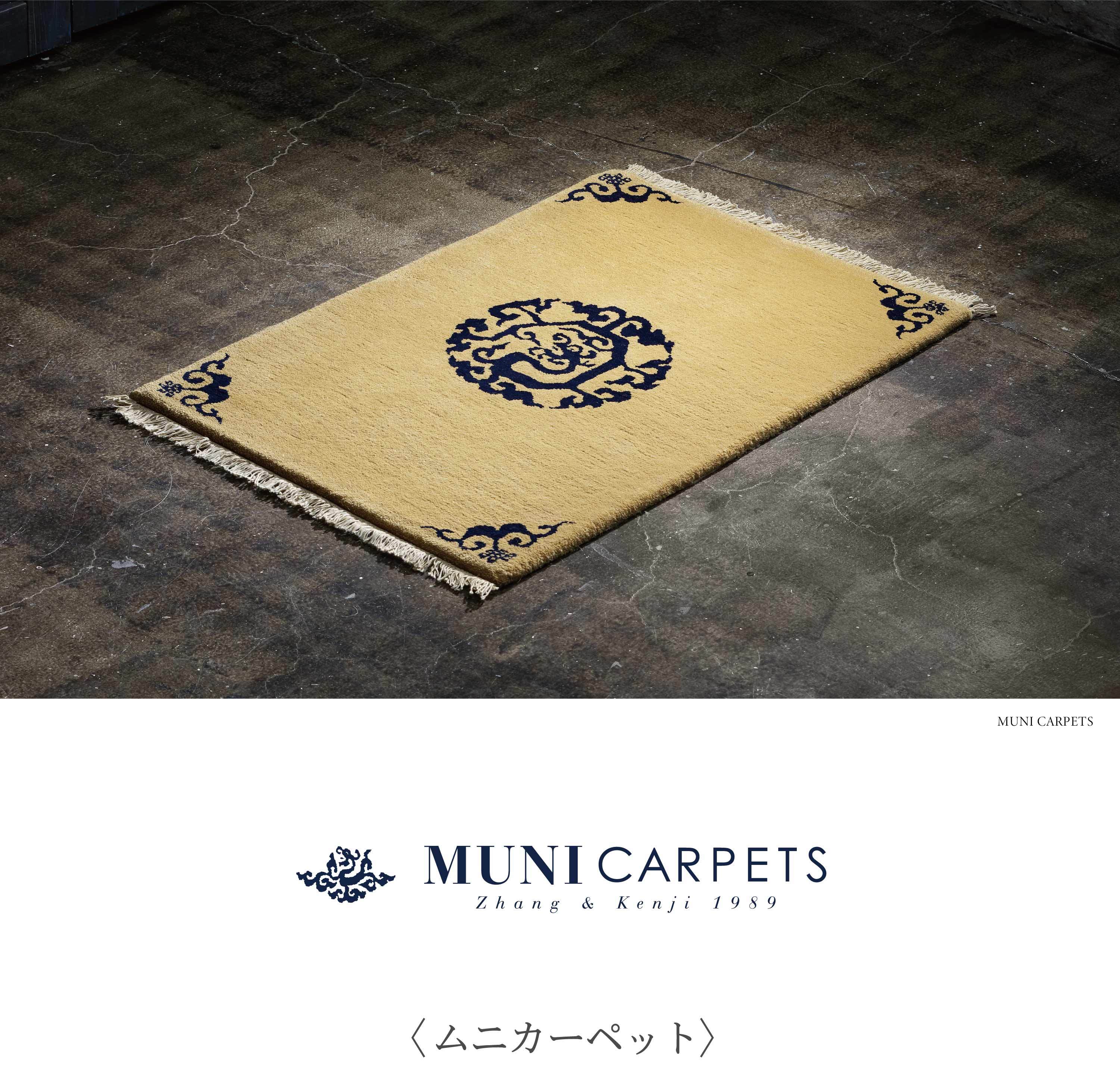 中国明朝時代において宮廷に献上されていた幻の絨毯を、現代の美意識に基づいてブラッシュアップさせた〈ムニカーペット〉。最上級のウールと天然染料による美しい表情からは、インテリアのエレメントを超えた揺るぎのない本物の価値を感じます。選び抜かれた素材、伝統を踏襲した美しい文様、卓越した職人の手仕事、さらには製作にまつわる数々の物語……。知れば知るほどに深く魅了されていく、唯一無二のカーペットです。